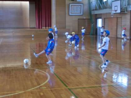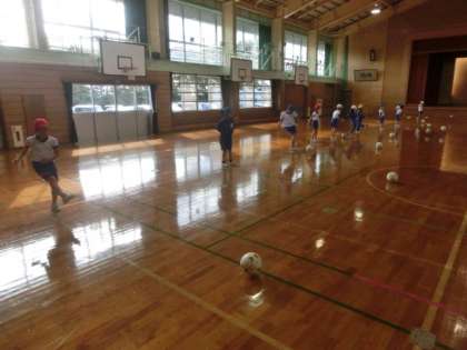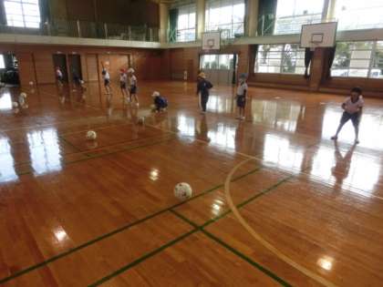 10月25日(火) 2年生 ボール遊び 公開日 2022/10/25 更新日 2022/10/25 学校の様子 2年生が体育館で、ボールを使った遊びをしました。2人組で、足でけって止めたり、下から投げて相手のまたの間を通したりするなど、手も足も使って操作しました。これから、サッカー遊びやボールゲームなども経験します。