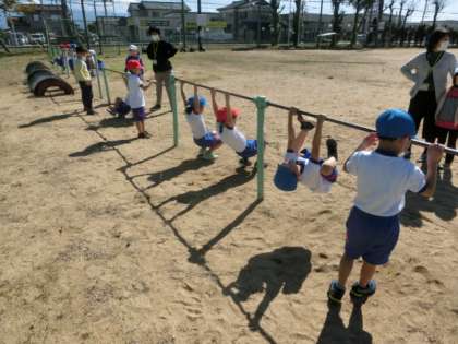 10月26日(水) 1年生 体ジャンケンと鉄棒遊び 公開日 2022/10/26 更新日 2022/10/26 学校の様子 1年生は今日の体育で、鬼ごっこや足や体を使ったジャンケン、鉄棒遊びなどをしました。鉄棒では、つばめ、後ろとび、ダンゴムシ競争、足かけ回りなどに挑戦しました。