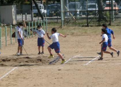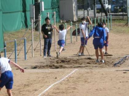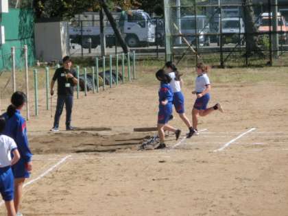 10月26日(水) 5年生 遠くにジャンプ! 公開日 2022/10/26 更新日 2022/10/26 学校の様子 5年生が体育で、走り幅跳びに挑戦しています。踏み切り足や助走距離などを工夫し、まずは調子よく跳べるよう練習しました。