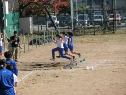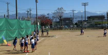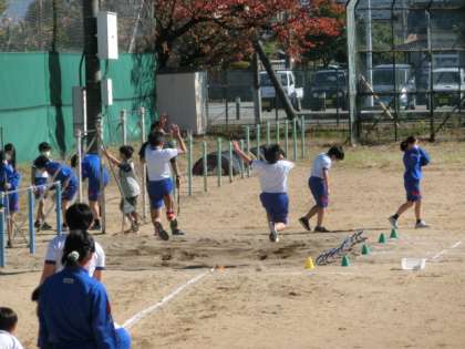 青空に映える美しい立山連峰に向かって、5年生が走り幅跳びをしています。「空や立山に向かって高く跳ぼう!」天気と同じように、気持ちよく運動する姿が見られました。この後は、給食です。