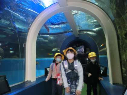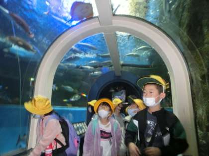 1・2年生が、魚津水族館に行ってきました。今年度、バスに乗ってみんなで行く初めての校外学習で、全員が参加しました。