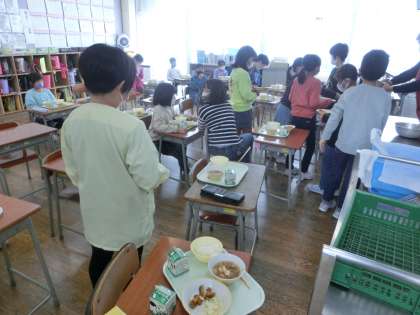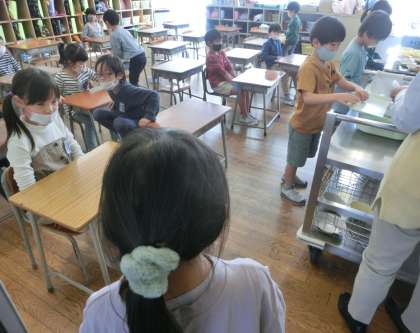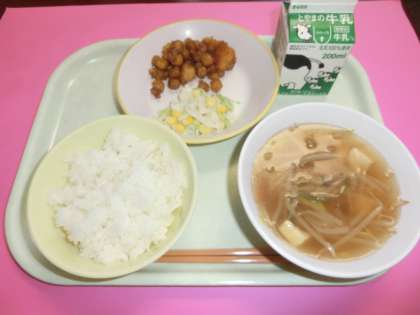 「ごはん、魚と豆のカレー揚げ、れんこんサラダ、豆腐スープ」でした。