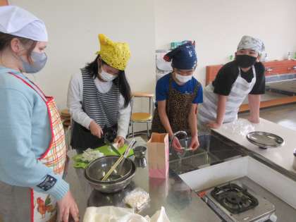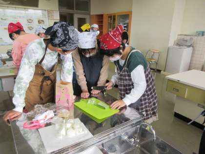 今日の家庭科は調理実習をしました。班のみんなで協力してみそ汁づくりです。にぼしでだしを取ったり、丁寧に材料を切ったりして美味しいみそ汁ができました。