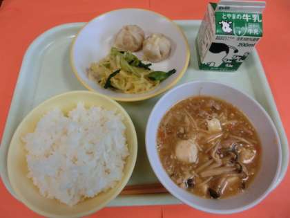 「ごはん、ショウロンポウ、チンゲンサイひたし、豆腐ときのこのあんかけ煮」でした。明日は、子供たちが楽しみにしている選択献立です!