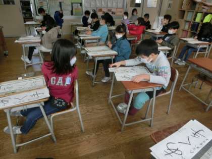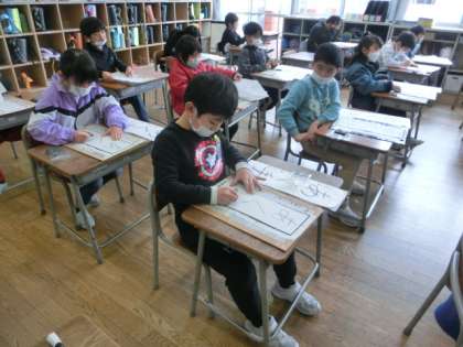 2年生が、2回目の練習をしました。「あく手」のひらがなと漢字、線の長さ・太さ、文字の大きさ・バランスなどに気を付け、だんだんと上手に書けるようになってきました。冬休み中も、多くの練習を期待します。