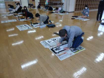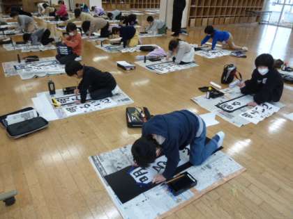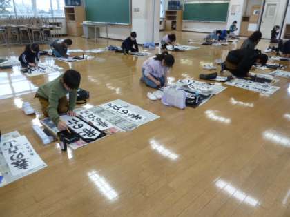 3、4年生の様子です。清書2枚だけなので、みんな真剣に書いています。