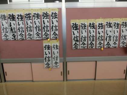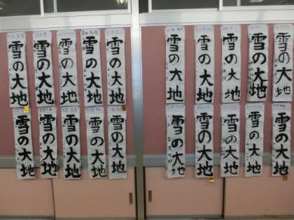 金賞を受賞した児童には、今日の昼休み「なかよしタイム」の集会で、賞状を授与します。残念ながら選ばれなかったどの子もみんな、力強く心のこもった書き初めを書いていました。