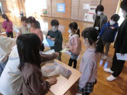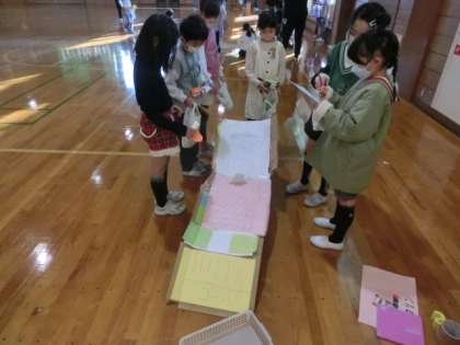 2年生が生活科でいろいろなおもちゃを作り、遊び場を考えた「おもちゃ大会」を開いて、1年生を招待しました。ミニ動画→