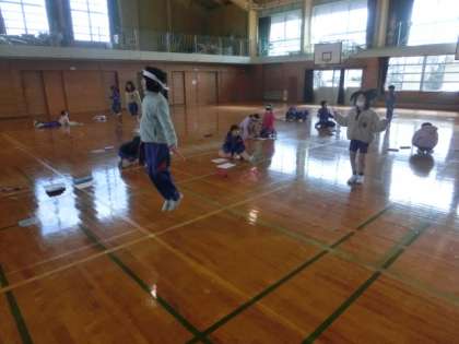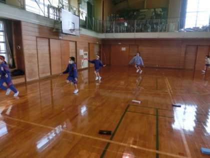 3年生が体育で、なわとびの練習を始めました。まずは、跳んで走ったり、みんなで速く跳んだり、ペアで回数を数えたりしています。