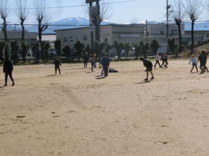 朝は厳しい寒さでしたが、大休憩にはグラウンドに出ると温かく、外で遊ぶ子供が多くいました。