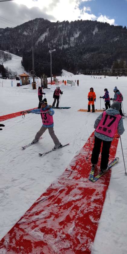 みんな、上手に楽しく滑っています。天候も、晴れてまぶしいほどです。