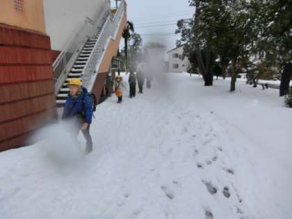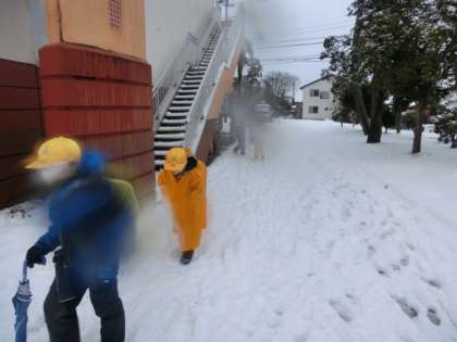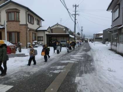 1月27日(金) 雪の上を登校 公開日 2023/01/27 更新日 2023/01/27 学校の様子 今週は大雪や風雪で大変でしたが、子供たちはスキーウエアや手袋などを着用して、雪道の登下校にもだいぶ慣れてきました。今後は、路面でのスリップや屋根からの落雪、用水への落下等に注意しましょう。