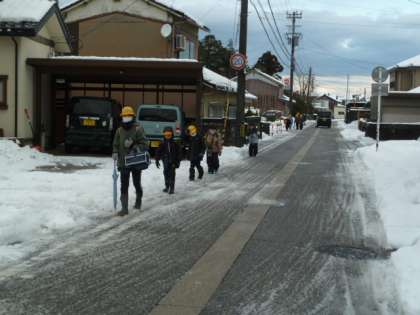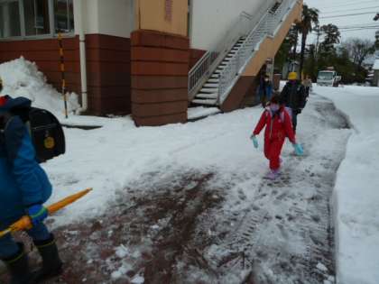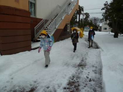 1月最後の週が始まりました。土日に積もった雪の中を、子供たちが歩いてきました。しっかりと防寒具や手袋を着け、安全に登校してます。