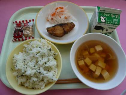 「なめしごはん、ふくらぎのかば焼き、なます、すまし汁、節分豆」でした。