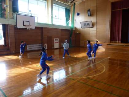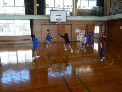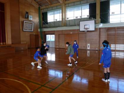 3年生が体育で、ボールゲームを始めました。まずはチームで、パスを回したり相手のボールをとったりする練習をしています。
