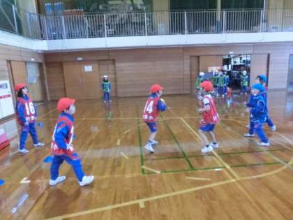 2年生が、初めてポートボールの試合をしました。パス・シュートをしたり守ったりする楽しみや難しさを体験しています。