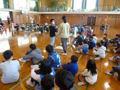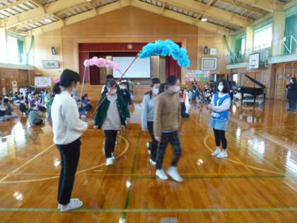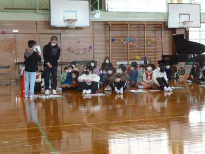 最後にインタビューを受けて今日の感想や中学校の抱負を述べて、退場した6年生。とても盛り上がり、楽しい思い出が残った2年ぶりの児童集会でした。卒業まであと2週間です。★ミニ動画→6年生インタビュー動画