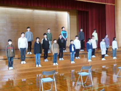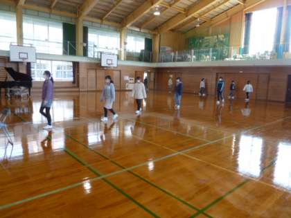 6年生が、卒業式の入退場や呼びかけの練習に力を入れています。歩き方、姿勢、声など、だんだんと緊張感が高まってきました。