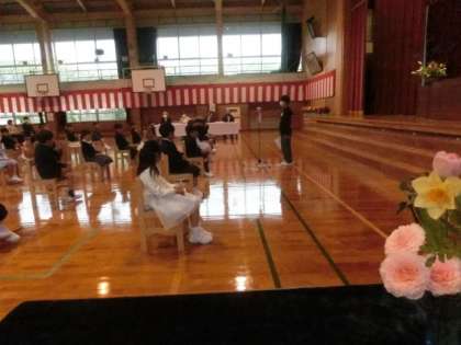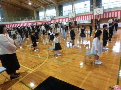 新入生23名が入学しました。式では、担任の先生から一人一人名前を呼ばれると、元気に返事をして、後ろの保護者や全校児童、来賓の方々にきらきらした顔を見せていました。「小学校は楽しいですよ」と代表児童から声をかけられていました。ミニ動画→