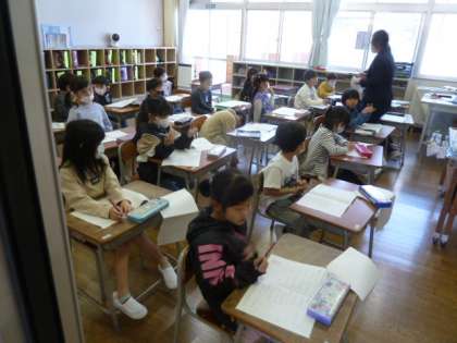 学校が始まって4日目。どの学級も落ち着いて、初めの学習や学級活動に取り組んでいます。