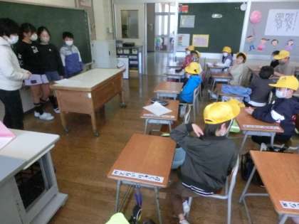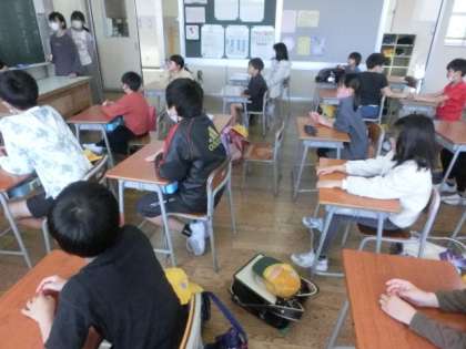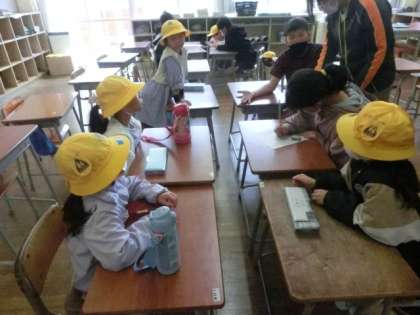 4月14日、初めての町別児童会を行いました。1年生も入れて、新しい集団登校斑の集合時間や場所を確認しました。