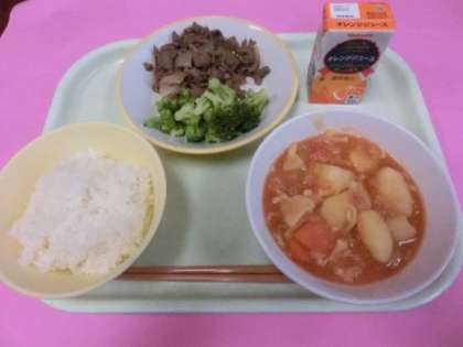 5月に富山市と金沢市でG7教育大臣会合が開催されることから、この会議に参加する主要7か国の料理を取り入れた「サミット給食」が始まりました。1日目は「ビーフソテー、白いんげん豆のトマト煮、そえ野菜、オレンジジュース」でした。どこの国の料理でしょうか。答えはお子さんに聞いてみてください。