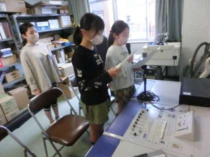校内放送では、今まで担当していた6年生が、新5年生にやり方を教える姿が見られます。優しく分かりやすく教えて、様子を見守る6年生。