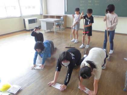 自分たちで役割を決めたり、時間を確認したりして丁寧に掃除をしています。新しい担当場所に慣れてきました。