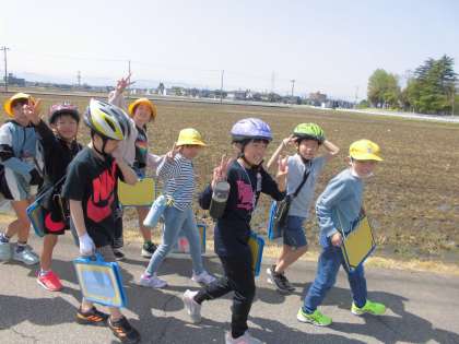 自転車教室が開催されました。交通安全の確認をしながら、自転車の乗り方を学びました。ご指導いただいた自治振興会、女性部、交通指導員の皆様、ありがとうございました。