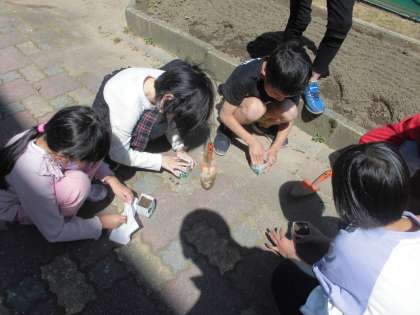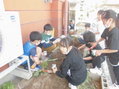 理科でヘチマの種を植えました。種をよく観察して、一日水に浸けてから植えました。これから育てていくことを楽しみにする4年生です。