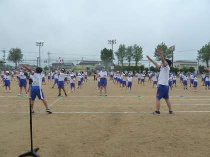 寒い雨が降る中、運動会が始まりました。ラジオ体操後、各団の応援・エール交換をしました。ミニ動画クリック→