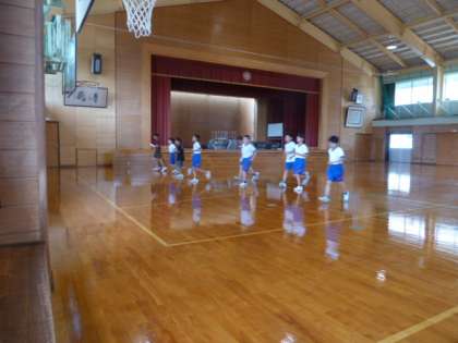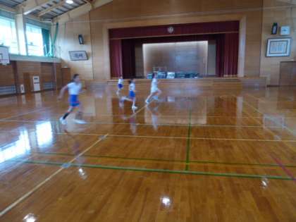5年生が体育のスポーツテストでシャトルランに挑戦しました。みんながんばって走り、中には片道70回に到達した女子もいました。