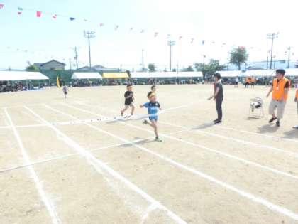 4年ぶりに地区の住民運動会が開催され、多くの小学生も入場行進やかけっこ、障害物レースなどに参加していました。