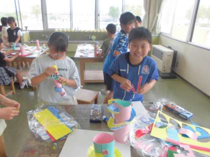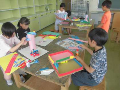 図工では「コロコロガーレ」の工作をしています。用紙の切れ込みを使ってカーブを作ったり、立体的な仕掛けをつくったりして、楽しみながら活動しています。
