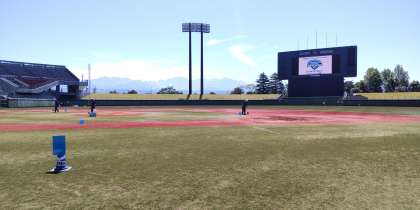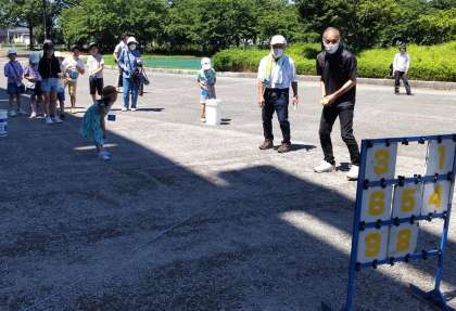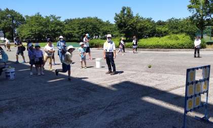 参加した子供たちは、アルペンスタジアム内外でストラックアウトや輪なげ、玉入れなどを楽しみ、最後はピッチャーマウンドでスピードガン大会をしました。