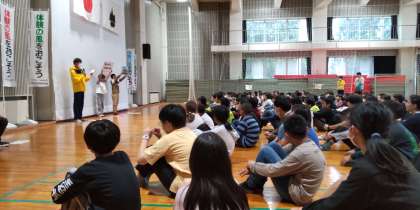 夕べのつどいで、黒部市、富山市の他校と学校紹介をしました。