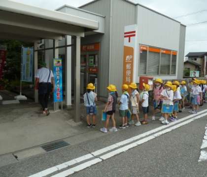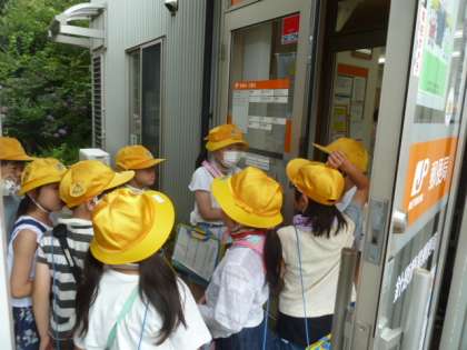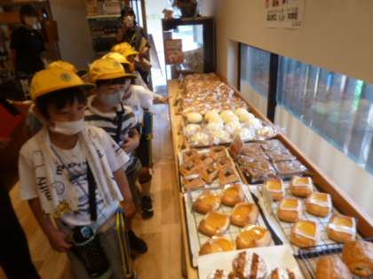 「きのうもパンを買いに来たよ」「郵便局は何時からしているのかな」パン屋や郵便局で見学したり質問したりしました。ご協力ありがとうございました。6日はアルペンスタジアムに行きます。
