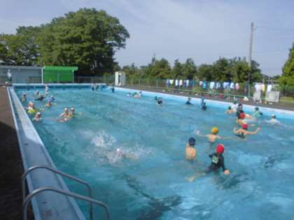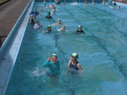 中学年で水泳の学習をしました。グループに分かれて水中に潜ったり、バタ足の練習をしたりするなど、楽しく活動しました。