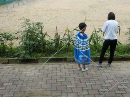 2年生なかよし級では、大切に育てていたトウモロコシの実ができました。「家に持ち帰って食べよう!」
