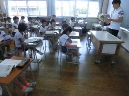 3年生の1時間目は道徳。先生の範読をよく聞いて、資料を見てじっくりと考えています。