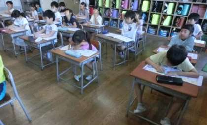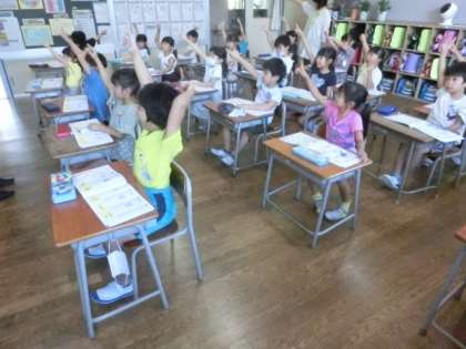 1年生では漢字の学習が始まり、「木」や「大」を書いています。書き順や横・縦棒、はらいなどを学んでいます。ご家庭でも練習を繰り返し、一字ずつていねいに覚えたいですね。