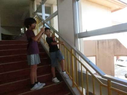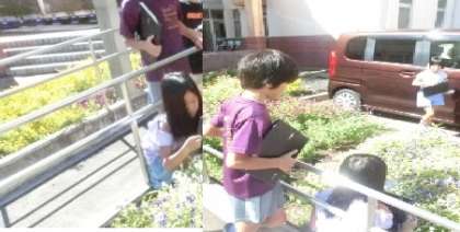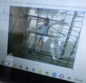 9月13日(水)3年生「小さな自分の写真をとろう」 公開日 2023/09/13 更新日 2023/09/13 学校の様子 3年生が図画工作科で、自分の小さな写真を、校内の好きな場所に置いて、タブレットで撮影しています。教室の棚、廊下、階段、花壇など、思い思いの物や場所に自分を置いて、ユニークな作品になりそうです。