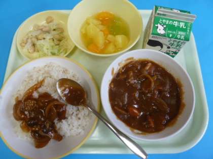 10月4日(水)「今日はハヤシライスの日!」 公開日 2023/10/04 更新日 2023/10/04 学校の様子 今日の給食は「麦ごはん、食べキリンハヤシ、大豆サラダ、フルーツゼリーミックス」でした。