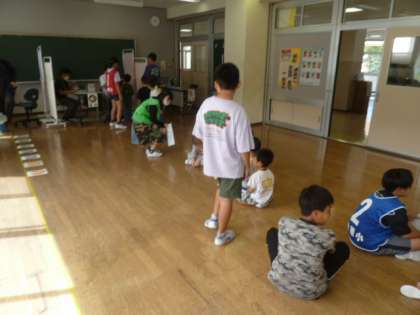 来年度入学予定児の健康診断がありました。来年、最高学年になる現5年生が一緒に、優しく誘導や世話をしました。「4月の入学を待っているよ」