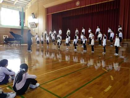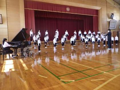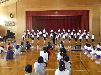 10月11日(水) 3・4年の合唱発表会 公開日 2023/10/11 更新日 2023/10/11 学校の様子 昼休み、3・4年生の合唱を、全校のみんなで見て聞きました。あさって13日(金)の区域連合音楽会で発表します。「今日のような、元気できれいな歌声で頑張ってね」(※音楽会では保護者観覧はできません。本校学習発表会でご覧ください。)