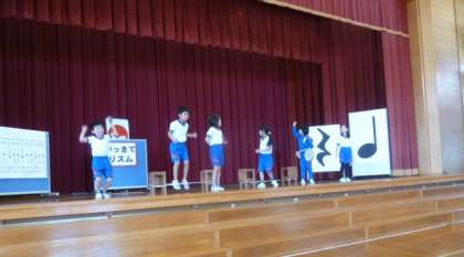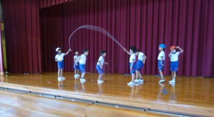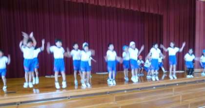 2年生が学習発表会に向けて、全体練習を始めました。リズム楽器、なわとび、フラフープの順で発表し、最後は全員ダンスです。お楽しみに!