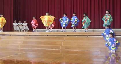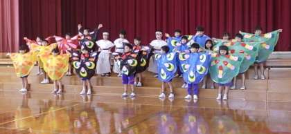 1年生が学習発表会に向けて、劇の練習をしています。全員が歌ったり、せりふを言ったり、演技をしたりと大活躍です。
