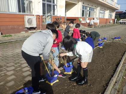 3年生が、育てていたホウセンカを土に戻す前に、残っている種を取り出しています。「来年も芽を出して、きれいな花を咲かせてね」
