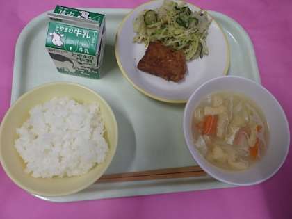 「ごはん、豚肉のかおり揚げ、梅肉あえ、みそ汁」でした。3学期も、委員会児童が、責任をもって校内放送を担当しています。