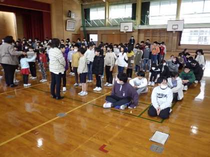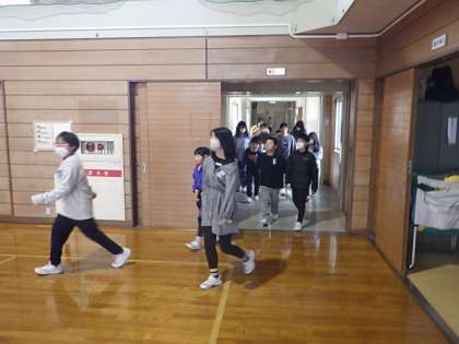 1月23日(火) 避難訓練(清掃中の火事) 公開日 2024/01/23 更新日 2024/01/23 学校の様子 「なかよし清掃中に火事」という想定で避難訓練を行いました。縦割り班で、上級生が下級生をしっかりと引率して、体育館に集合しました。先日の地震もあって、誰一人ふざけたりしゃべったりせず、みんな真剣に素早く行動していました。